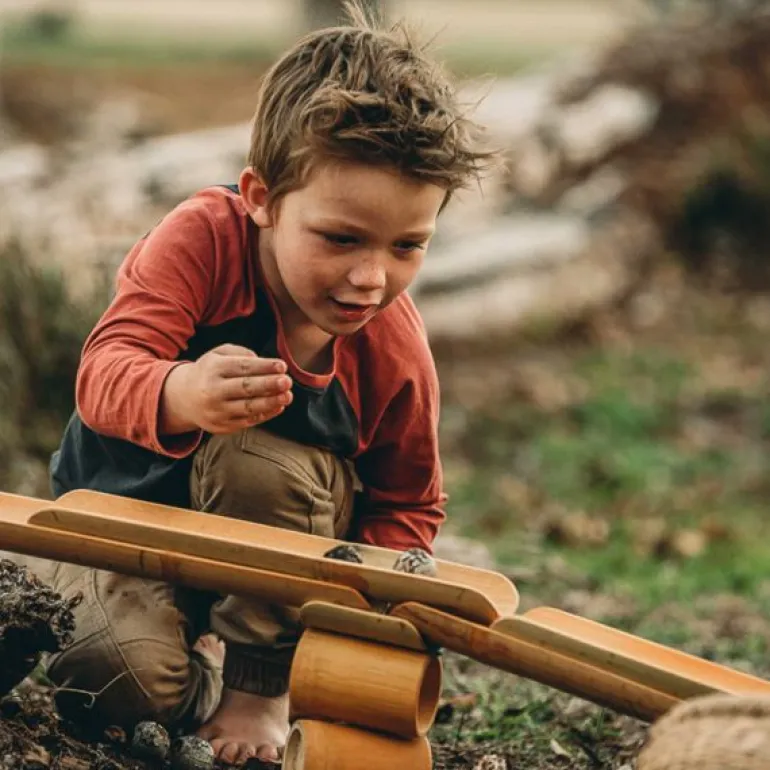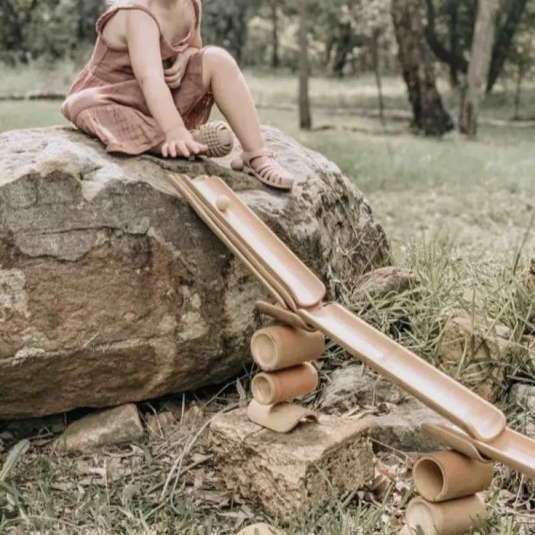 This natural bamboo, educational toy allows children to investigate rolling a variety of objects such as balls of different sizes or toy cars. This learning resource allows many learning opportunities for children to practise problem solving as they engage in engineering their own unique ball run.