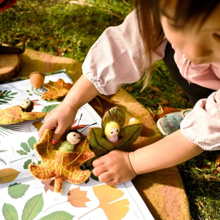Crafted from natural wool felt and shaped into delicate leaves, these felt leaf babies capture the essence of the natural world in a whimsical and playful way.