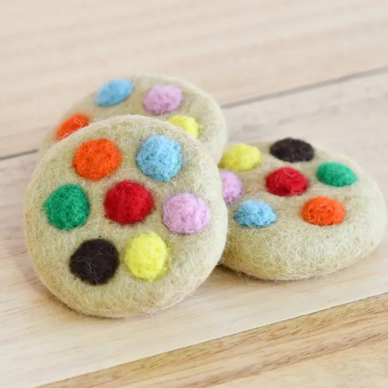 Each cookie has been meticulously needle-felted with dense wool that has been dyed with non-toxic colours, making it safe for play.