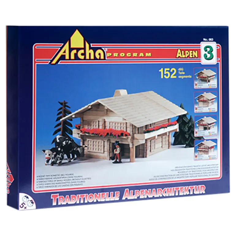 This set contains 152 wooden pieces with for 4 different building types to construct.