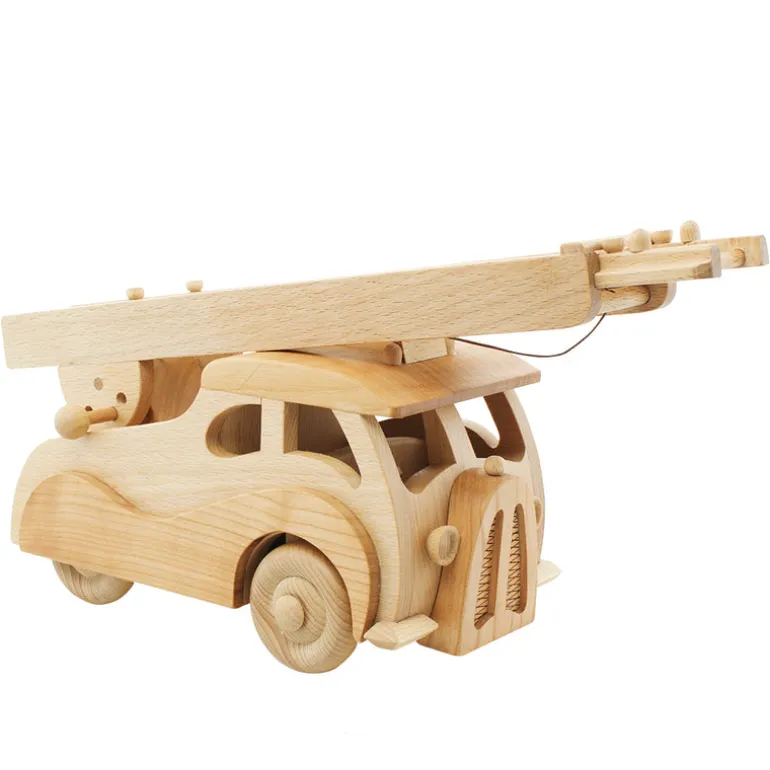 The ladder on this beautiful wooden fire truck has three different positions which can be easily fixed using the small rod attached. The ladder can be pulled out and extends up to an incredible 80 cms! All of the wheels spin freely. Our Delia fire engine really is one of a kind and one of the most beautifully made wooden toys we have found.
