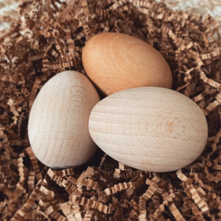 Each egg is beautifully handmade and has no lacquer or finishes so that they can enjoy the natural wood or have lots of fun painting and decorating them. Perfect for creative play!