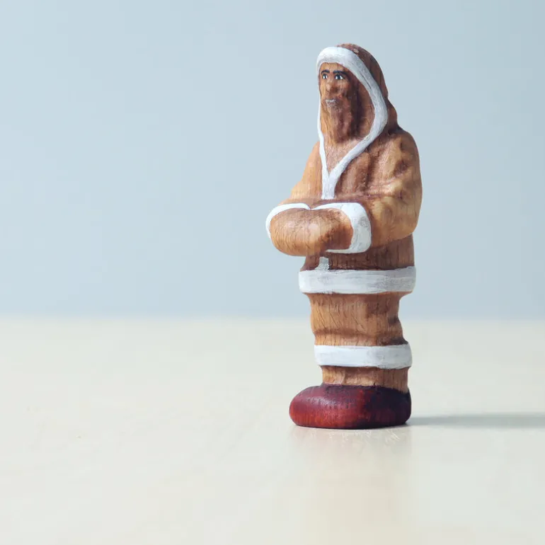 Each figure has been intricately and skilfully carved in wood, then carefully sanded by hand, so there are no sharp edges. They are then beautifully painted by hand and coated in a top layer of olive oil and beeswax to protect them.