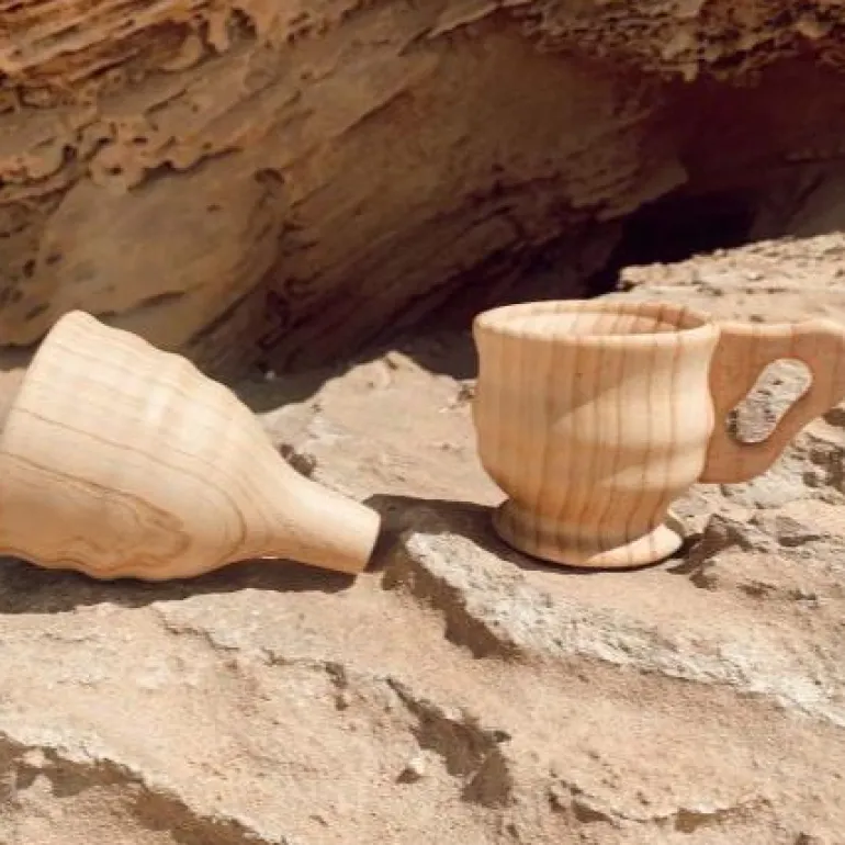 Measurements: Wooden Funnel: Diameter 9.5cm Height 14cm. Large Cup: Diameter 13.5cm x 9cm x Height 8.6cm