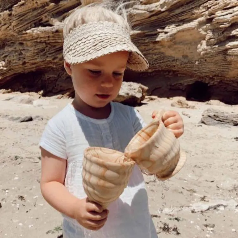 This beautiful timber resource is so open-ended with multiple uses! It can be used for water play or dry use sensory play. Children can investigate pouring water or experiment pouring with other loose materials such as fine sand or small grains. The timber funnel has carefully carved wooden ripples, perfect for young children to easily hold on to it while pouring. The matching wooden cup also has a large wooden handle for easy gripping for little hands.