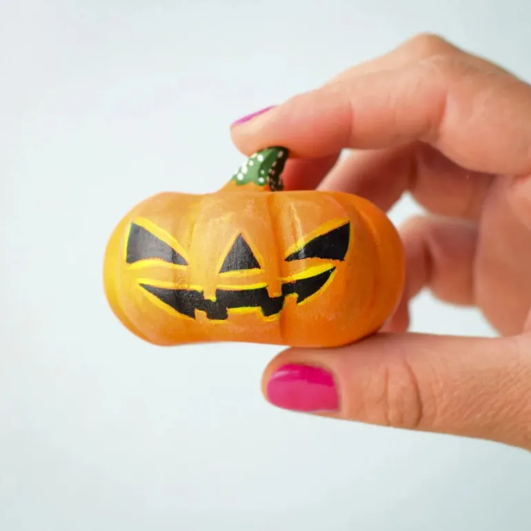 Each pumpkin is carved from sustainably sourced wood and painted with non-toxic, child-safe colours, making them perfect for safe and imaginative play.