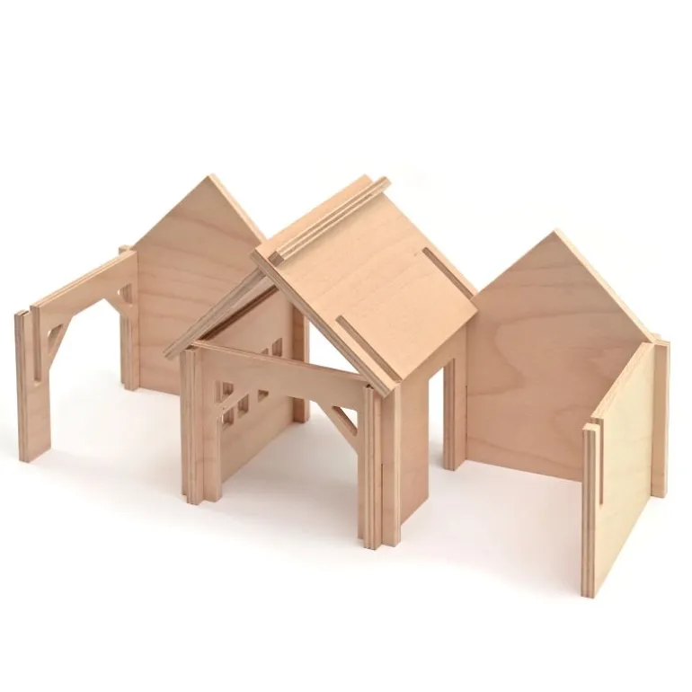 This is one of the medium sized house sets from Domeczech, containing 9 wooden building pieces. This lovely set creates the perfect setting for lots of small world play using all of their favourite animals, vehicles and figures.