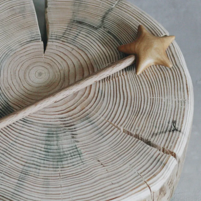 These toys are made of solid wood, which is minimally processed to preserve as much of its texture and natural properties. Unlike plastic, wood is a non-uniform natural material that frequently has growth rings, knots, coloured spots, rough areas as well as differing tones and colours. These are not defects – they are distinctive signs that guarantee the natural origin and give uniqueness to each toy, telling the story of the tree from which it was made.