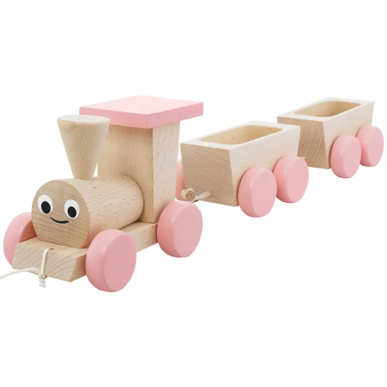 Our adorable wooden toy pull along steam train Belle, has just joined our amazing collection of toy trains! Belle’s carriages are perfect for filling up with all sorts of goodies…even easter eggs! Each carriage easily detaches with a button type fastener so even the smallest hands can practice undoing them and re-attaching them. These wonderful wooden toys are designed and handcrafted by Miva Vacov in Czech Republic.