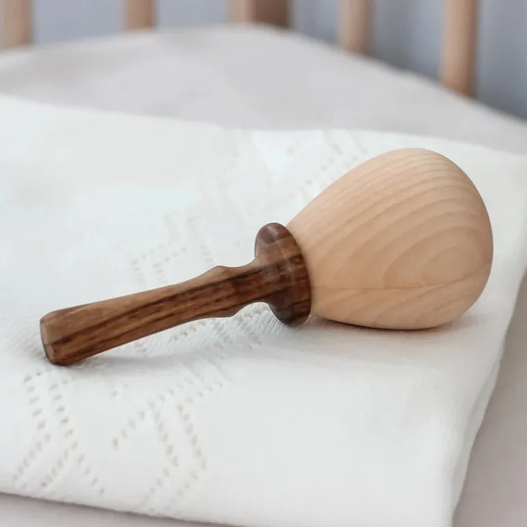 These stunning wooden rattles are lovingly crafted from the highest quality Linden wood. They are designed to be a very special keepsake toy that can be passed down.