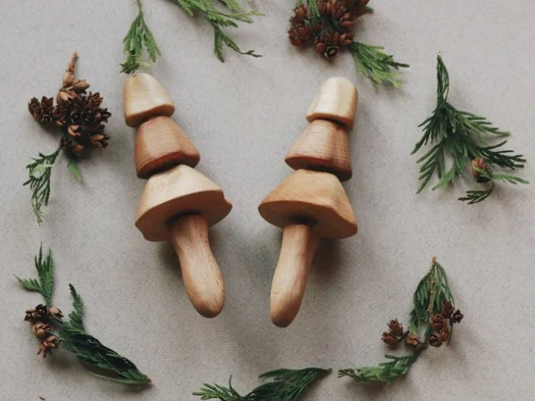 One of the most wonderfully unique wooden rattles we have come across! Made from beautiful beech and maple wood and finished with natural linseed oil. These stunning toys create a lovely sound when you shake them up and down and the wooden pieces rattle. Easy for small hands to hold and shake, and no sharp edges.