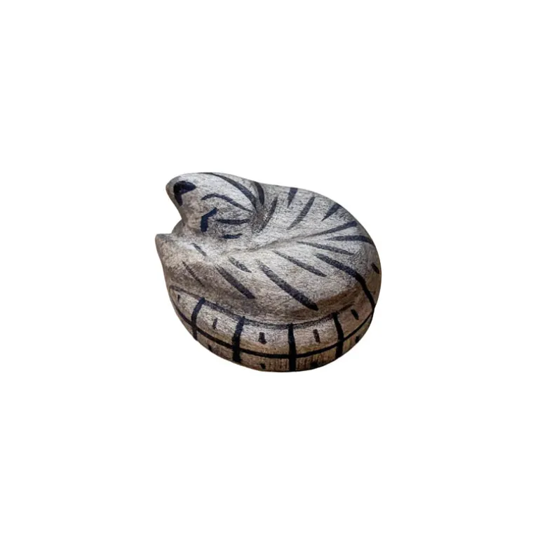 These sleepy wooden cat knows how to enjoy the good life. She may be resting now but it won’t be long before she wakes again for some playful fun!