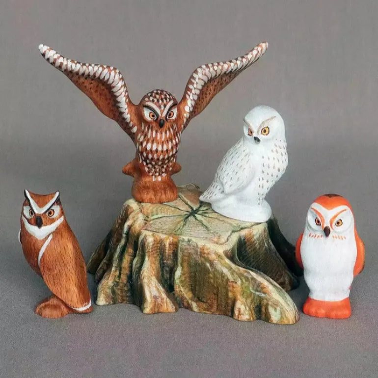 These beautifully hand carved wooden tree stumps invite children to invent stories, play pretend and embody certain characters.