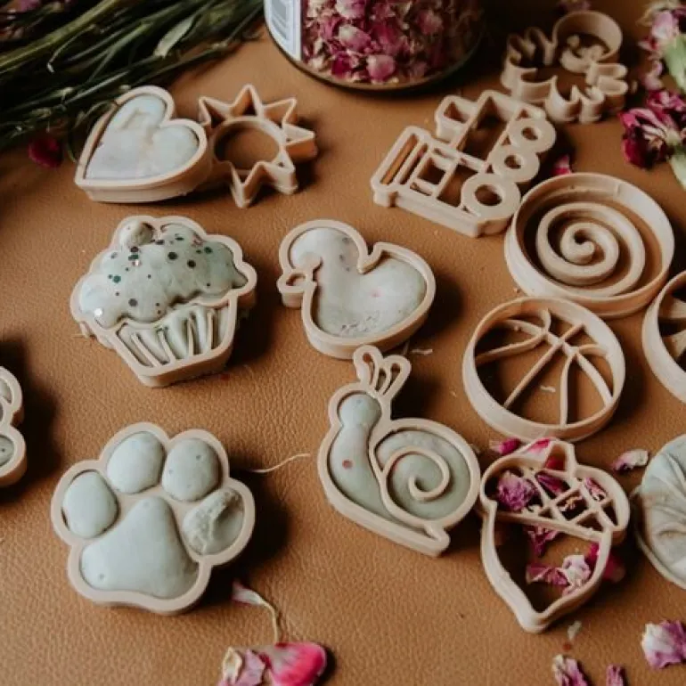 The Kinfolk collection of dough cutters, in a nature-inspired tone can be used together with both play dough or cookie dough.