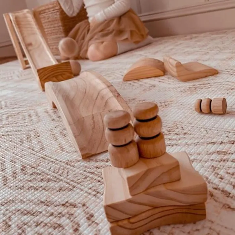 As children build and investigate rolling a variety of objects they gain a deeper understanding of foundational maths and science concepts (STEM). There are so many opportunities for children to practice problem solving, engage in open-ended play and investigate engineering concepts. This natural learning resource is made from natural pine timber and every piece is unique. This set can also be added to loose parts or combined with blocks or our Bamboo Construct & Rolls set for further building extensions.