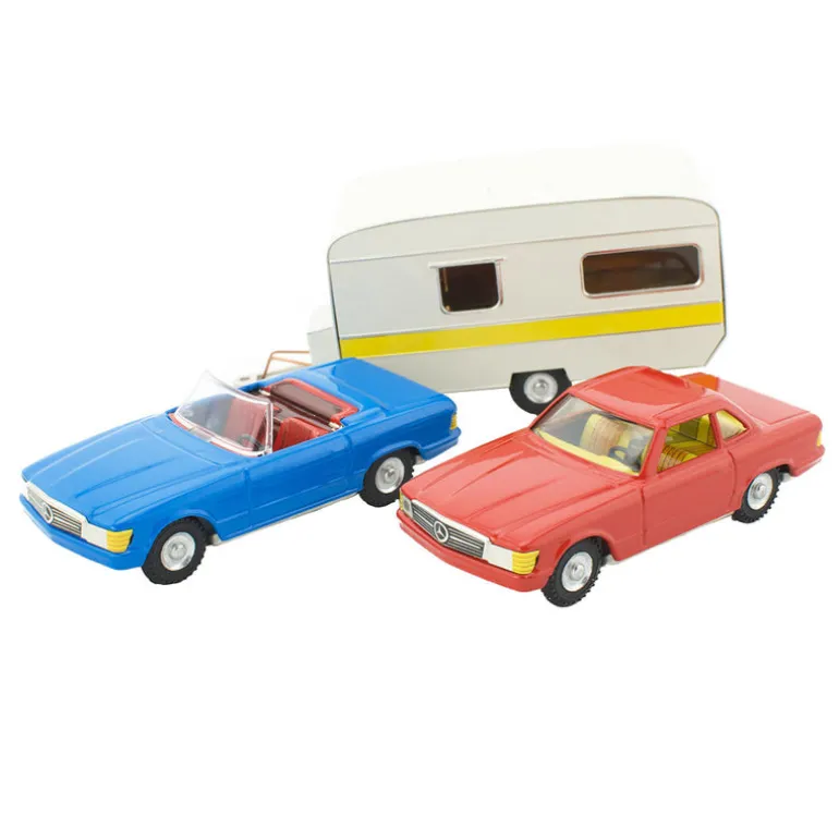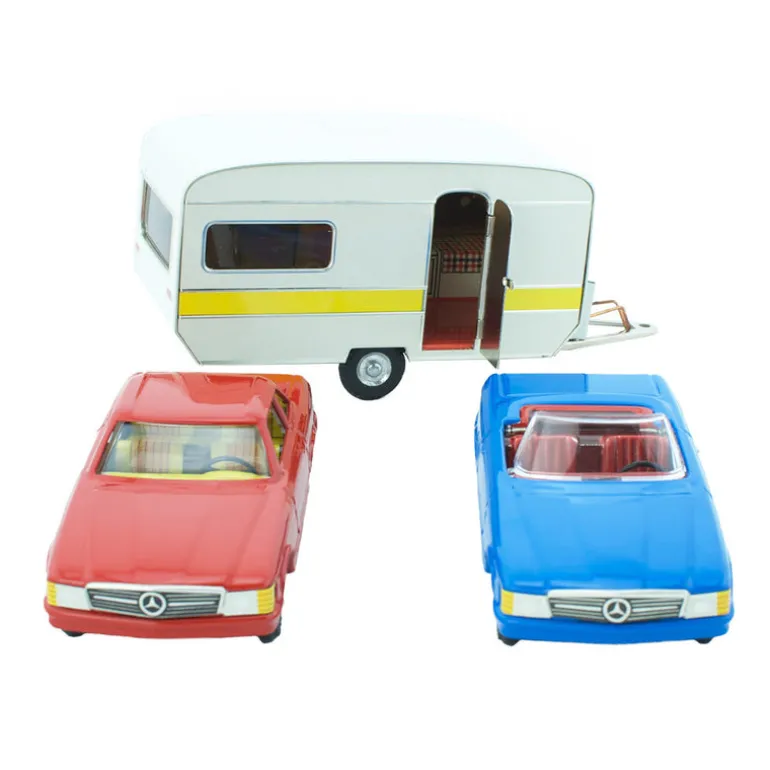 This colourful tin toy car gift set comes with the Mercedes Benz Cabrio and Coupe as well as our very popular retro caravan. This beautiful set makes an excellent gift for any car enthusiast, young and old, and is sure to be treasured for many years to come!