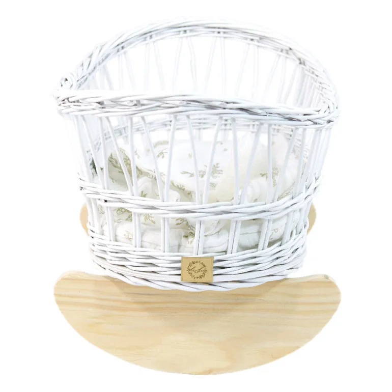 The muslin bedding can be machine washed on a gentle cycle. Do not tumble dry and avoid harsh detergents/stain removers. The wicker itself can be wiped over with a clean damp cloth to remove any dust or dirt.