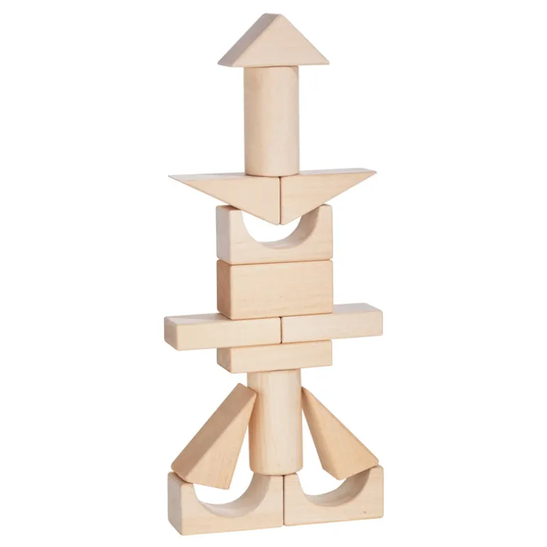 This beautiful building block play set, consists of basic and familiar shapes that allow for endless designs and constructions.