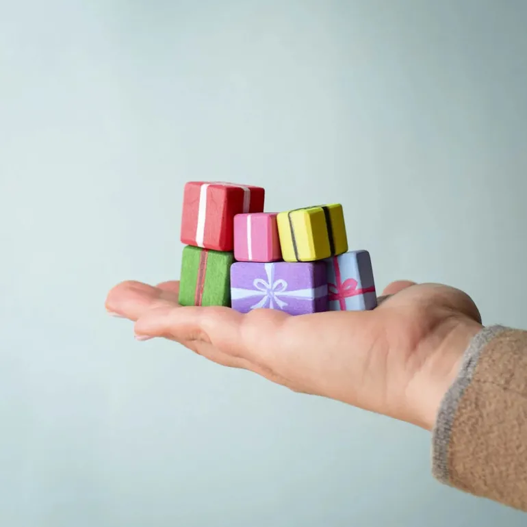 Each piece is expertly handcrafted from sustainably sourced wood, ensuring every gift is unique. Painted with non-toxic, water-based dyes, this set is safe for children, aligning with Montessori and Waldorf educational principles. Designed to enhance creativity and fine motor skills, these wooden presents are an eco-friendly alternative to plastic decorations, fostering both joy and environmental awareness.