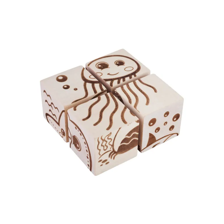 Each puzzle comes with 4 cube pieces, with a total of 6 puzzle image combinations.