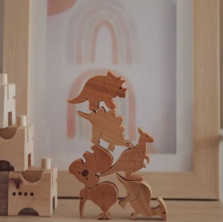 Each animal is a unique piece designed with love and care and they allow children to explore and create imaginary worlds as they play or stack them as high as possible and knock them down again.