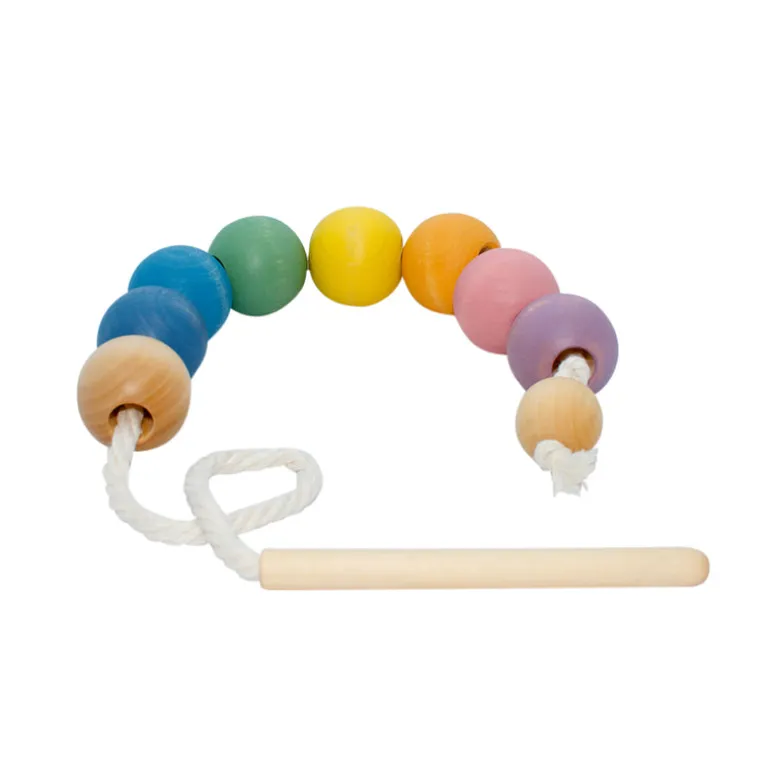Each toy comes with a cotton rope with threading stick and 8 hand painted pastel coloured beads.