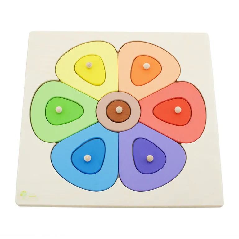 This beautiful and brightly coloured wooden puzzle flower is the perfect start to learning through play and helps encourage and enhance important skills such as problem solving, colour and shape recognition and gross motor. All of our wooden puzzles are handcrafted in Czech Republic using sustainable wood and non-toxic paints.