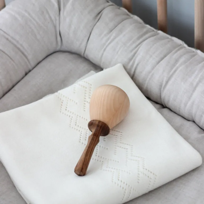 These stunning wooden rattles are lovingly crafted from the highest quality Linden wood. They are designed to be a very special keepsake toy that can be passed down.