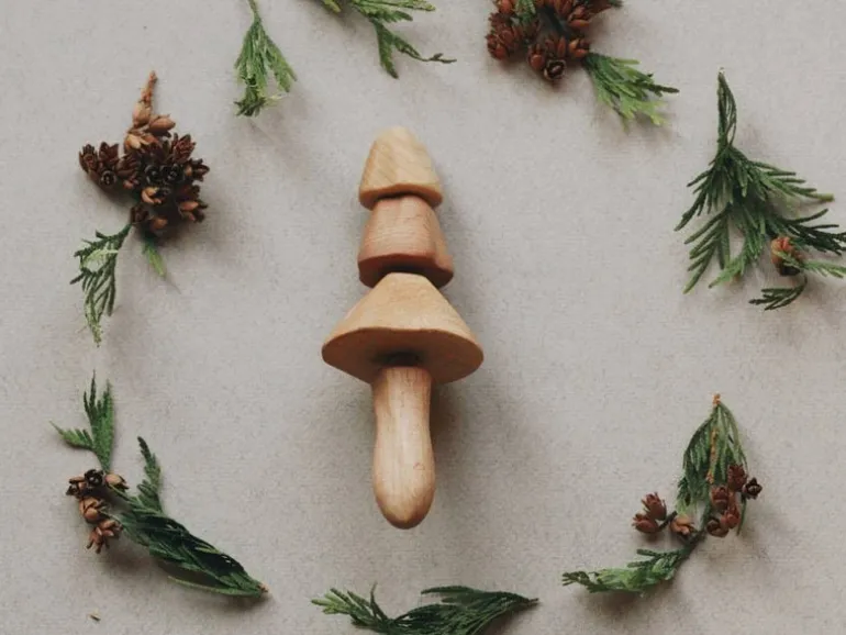 One of the most wonderfully unique wooden rattles we have come across! Made from beautiful beech and maple wood and finished with natural linseed oil. These stunning toys create a lovely sound when you shake them up and down and the wooden pieces rattle. Easy for small hands to hold and shake, and no sharp edges.