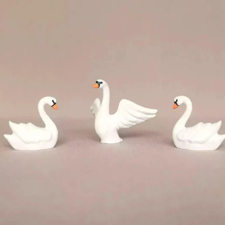 Each hand carved wooden swan sculpture is painted with non-toxic water-based paints and coated with olive oil and beeswax, making them play safe, fun, and creative for your child. The swan toys have been carefully carved and sanded, so they are safe even for the smallest hands to play with.
