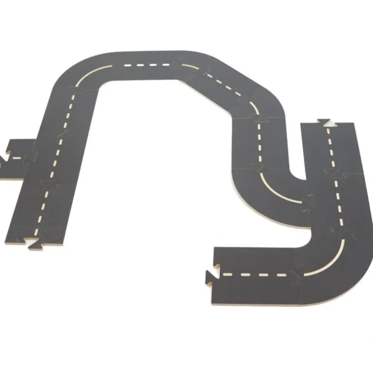 The WoodyWay wooden road kit is a variable car track made of birch wood. It fits perfectly with the Domeczech house and town sets, but children can also use it separately with the toys and cars they already have at home.